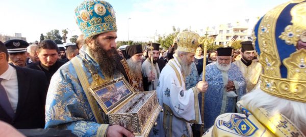 Λίγο μετά το απόγευμα της Κυριακής η Πάφος υποδέχθηκε την Τιμία Ζώνη της Υπεραγίας Θεοτόκου με τιμές αρχηγού κράτους.