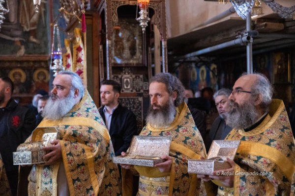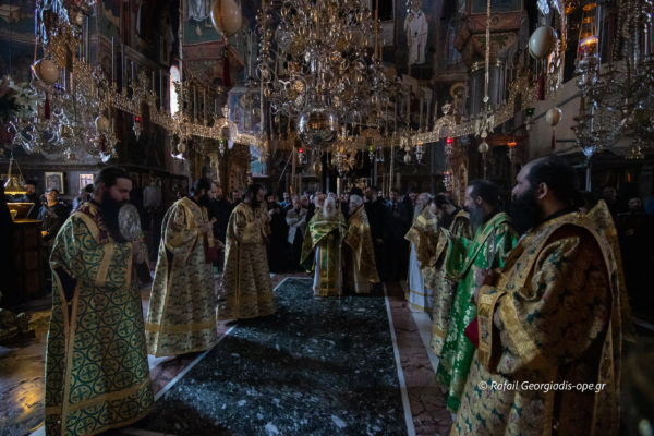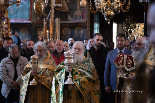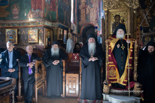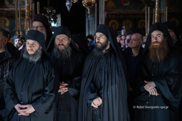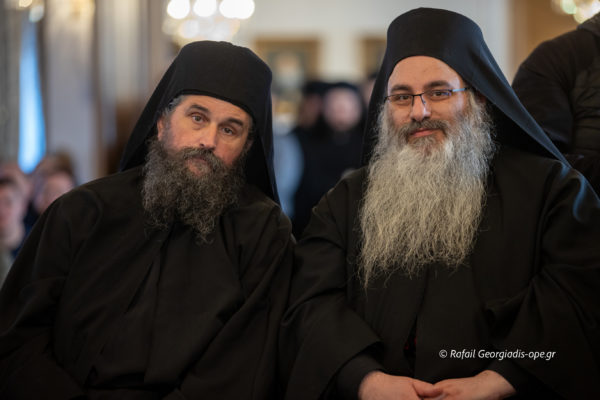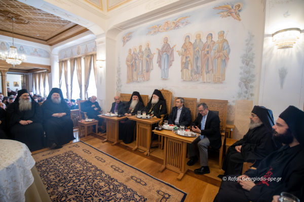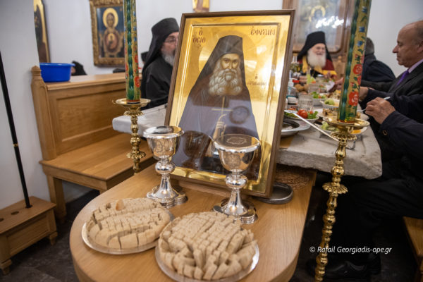 Ακολούθησε αγειορίτικο κέρασμα στο Συνοδικό της Μονής όπου πλήθος προσκυνητών προσήλθε για να ευχηθεί στον Καθηγούμενο.