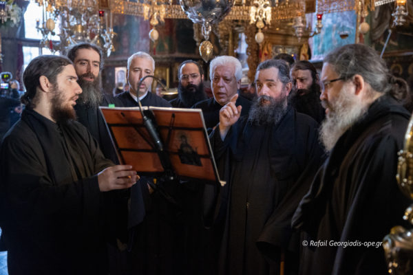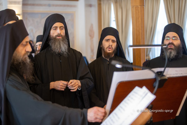 Ο χορός που έψαλλε κατά την πανήγυρη απέδωσε ύμνους προς τιμήν του Οσίου Εφραίμ καθώς και το πολυχρόνιο του εορτάζοντος Καθηγουμένου.