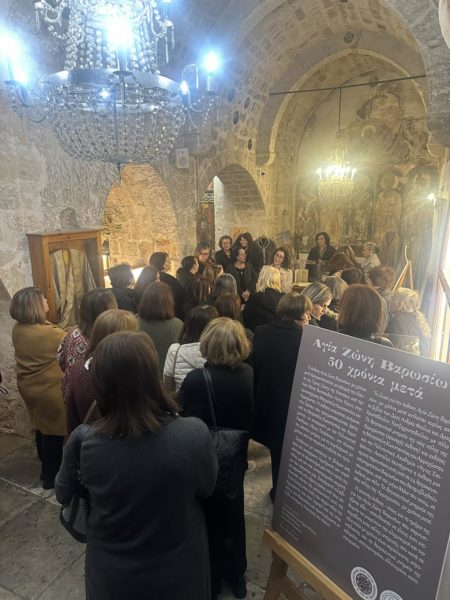 Στο χθεσινό μάθημα του Χριστιανικού Συνδέσμου Γυναικών που πραγματοποιείται κάθε Τρίτη, έγινε η ξενάγηση στην έκθεση φωτογραφιών και κειμηλίων με τίτλο “Αγία Ζώνη Βαρωσίων. 50 χρόνια μετά” που παρουσιάζεται από τη Μητρόπολη Κωνσταντίας και Αμμοχώστου και την Πολιτιστική Ακαδημία “Άγιος Επιφάνιος”, στην Αρχαία Εκκλησία της Αγίας Αννας στο Παραλίμνι, από τις 5 Φεβρουαρίου έως τις 15 Μαρτίου 2024.