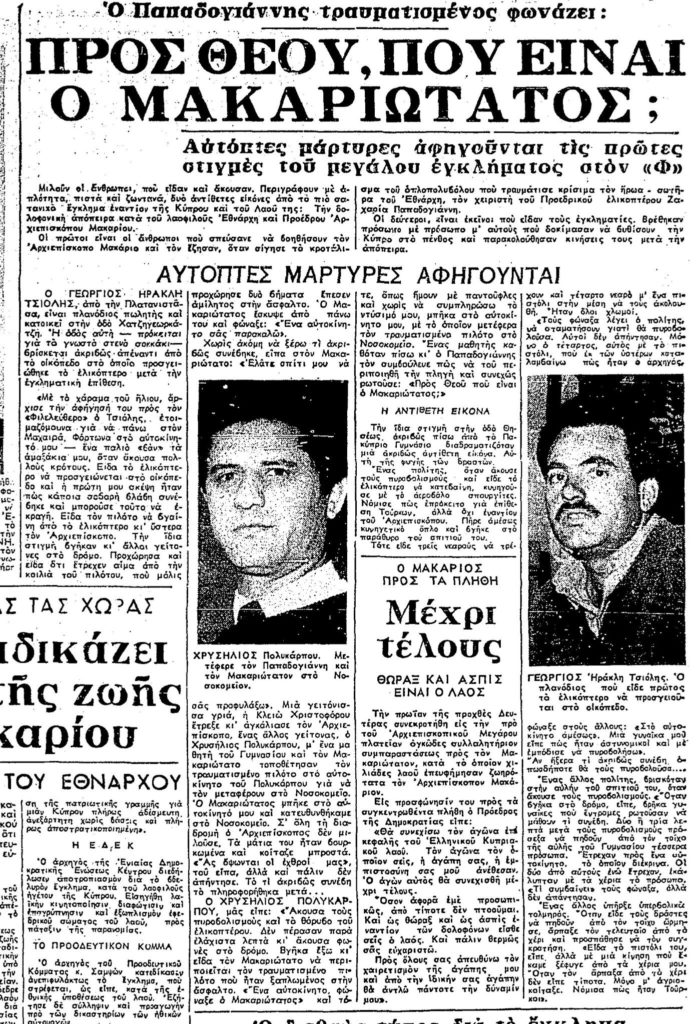 8 Μαρτίου 1970: Η πρώτη δολοφονική απόπειρα κατά του Προέδρου της Κυπριακής Δημοκρατίας Αρχιεπισκόπου Μακαρίου Γ΄