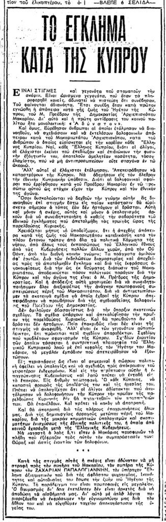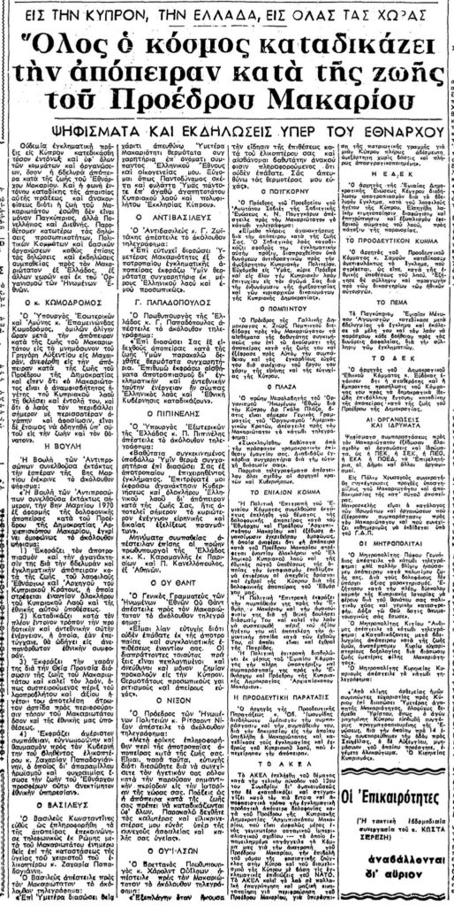 Πηγές αποκομμάτων: Ο Φιλελεύθερος, 11 Μαρτίου 1970· Ελευθερία, 11 Μαρτίου 1970· Ψηφιακός Ηρόδοτος.