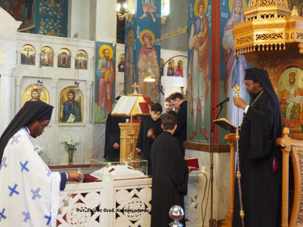 Προ της απολύσεως της Θείας Λειτουργίας, ο Σεβασμιώτος ευχαρίστησε τους Έλληνες, για την στήριξη στο έργο της Ιεραποστολής στην Αφρική και τον επιχώριο Μητροπολίτη Μεσογαίας και Λαυρεωτικής κ. Νικόλαο, για την συμπαράσταση του στο έργο της Ιεράς Μητροπόλεως Κανάγκα.