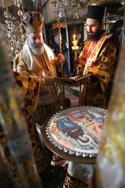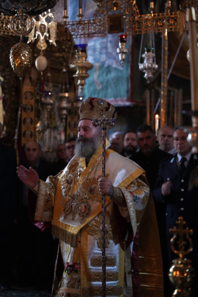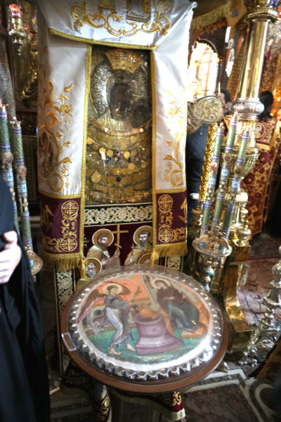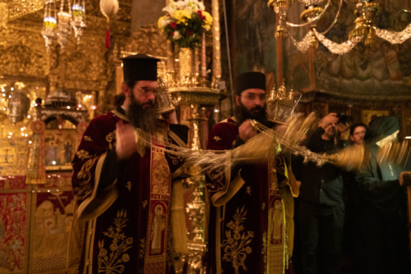 Το πρωί της εορτής μετά από ολιγόωρη διακοπή από την Αγρυπνία ο Σεβασμιώτατος τέλεσε στην φιάλη της Μονής την ακολουθία του Μικρού Αγιασμού και ακολούθησε η λιτάνευση της Ιεράς Εικόνας της Παναγίας της Βηματαρίσσης πέριξ της Μονής.