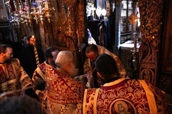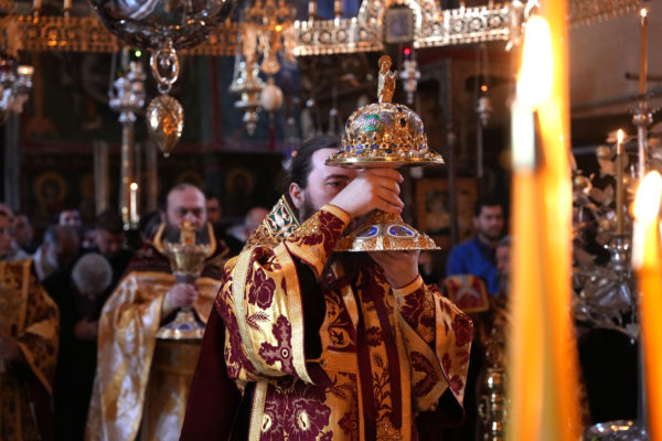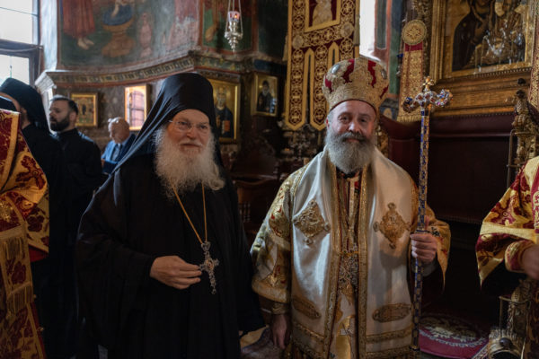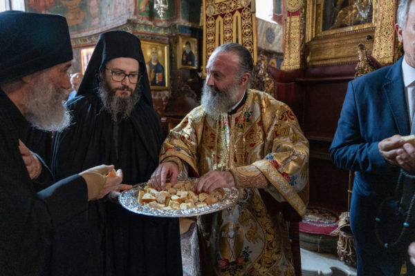 Της ευχαριστιακής συνάξεως προέστη ο Αρχιεπίσκοπος Αυστραλίας κ. Μακάριος πλαισιούμενος από τον Καθηγούμενο της Μονής Γέροντα Εφραίμ, τον Καθηγούμενο της Ιεράς Μονής Χιλανδαρίου Γέροντα Μεθόδιο και άλλους Αγιορείτες πατέρες και πατέρες της Βατοπαιδινής Αδελφότητας.