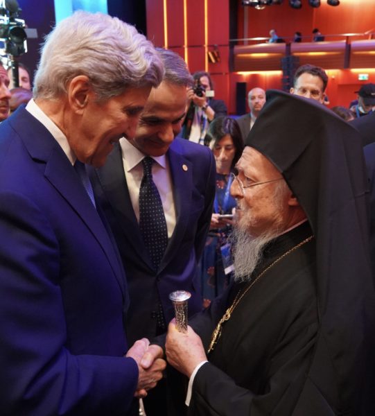 Στο πλαίσιο του συνεδρίου, ο Πατριάρχης, είχε σύντομη συνομιλία με τον συμμετέχοντα κ. Τζον Κέρι, πρώην Υπουργό Εξωτερικών των ΗΠΑ (2013-2017) και Ειδικό Απεσταλμένο των ΗΠΑ για το κλίμα (2020-2024), ο οποίος στην ομιλία του αναφέρθηκε με εγκωμιαστικούς λόγους στην εμπνευσμένη διακονία του Παναγιωτάτου για την προστασία του φυσικού περιβάλλοντος.