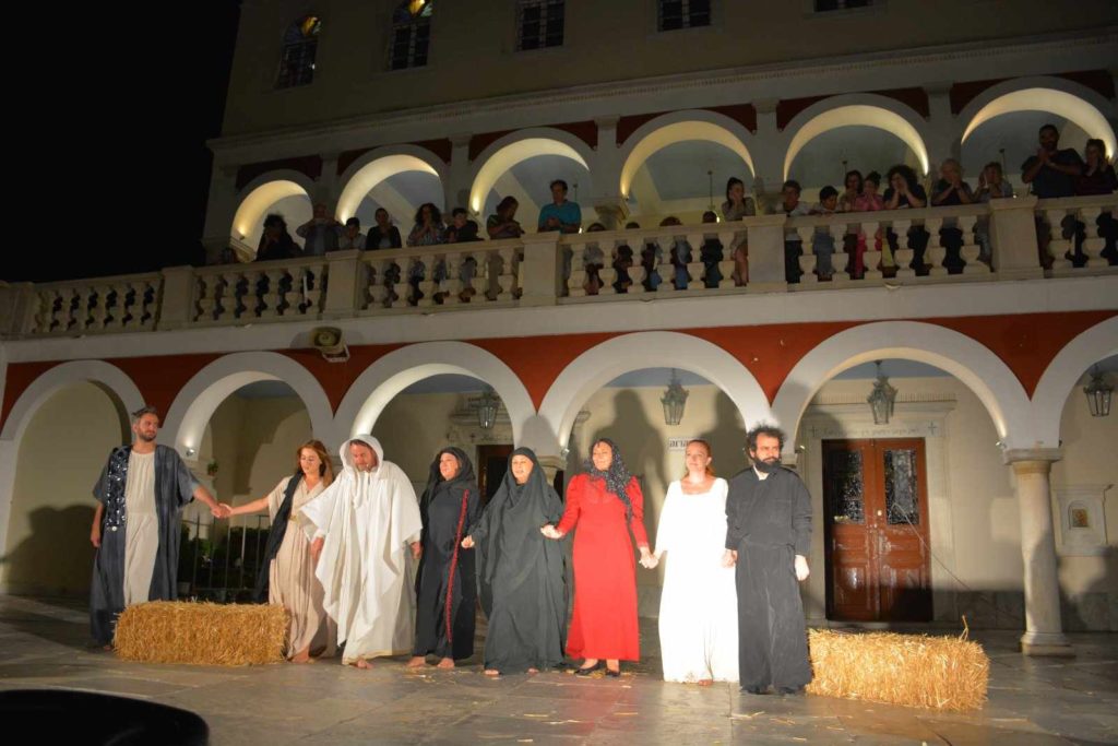 Σε ένα περιβάλλον μυσταγωγικό, ανάμεσα στον γεμάτο αστέρια ουρανό και τις γήινες ευωδιές του βασιλικού, όρθιοι εκπρόσωποι της εκκλησίας, των συλλόγων καθώς και οι θεατές καταχειροκρότησαν τους ηθοποιούς και τον σκηνοθέτη της παράστασης.