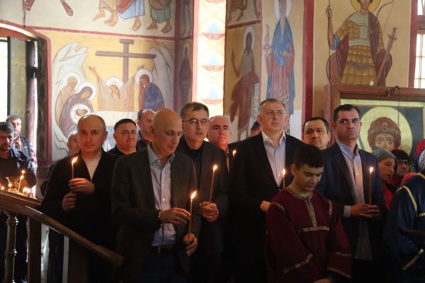 Ο Σεβασμιώτατος τέλεσε την Θεία Λειτουργία στην οποία παρέστη και ο προϊστάμενος της Κρατικής Υπηρεσίας Θρησκευτικών Υποθέσεων, Ζάζα Βασακμάτζε.