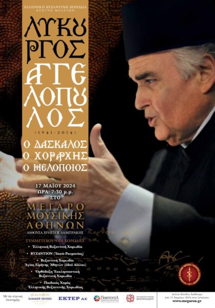 Η Ελληνική Βυζαντινή Χορωδία τιμά τον ιδρυτή και πρώτο χοράρχη της Λυκούργο Αγγελόπουλο (1941-2014), μια πολύπλευρη καλλιτεχνική και μουσική προσωπικότητα, που διακόνησε για πάνω από μισό αιώνα τη μουσικολογική έρευνα και την ψαλτική, μέσα από το αναλόγιο, την εκπαίδευση, και τον βυζαντινό χορό.