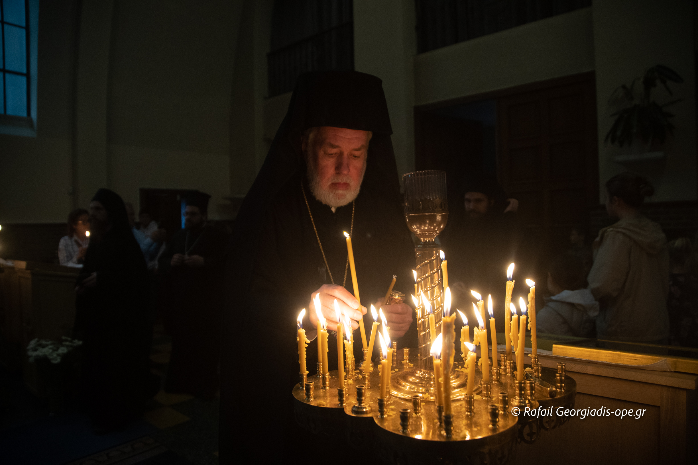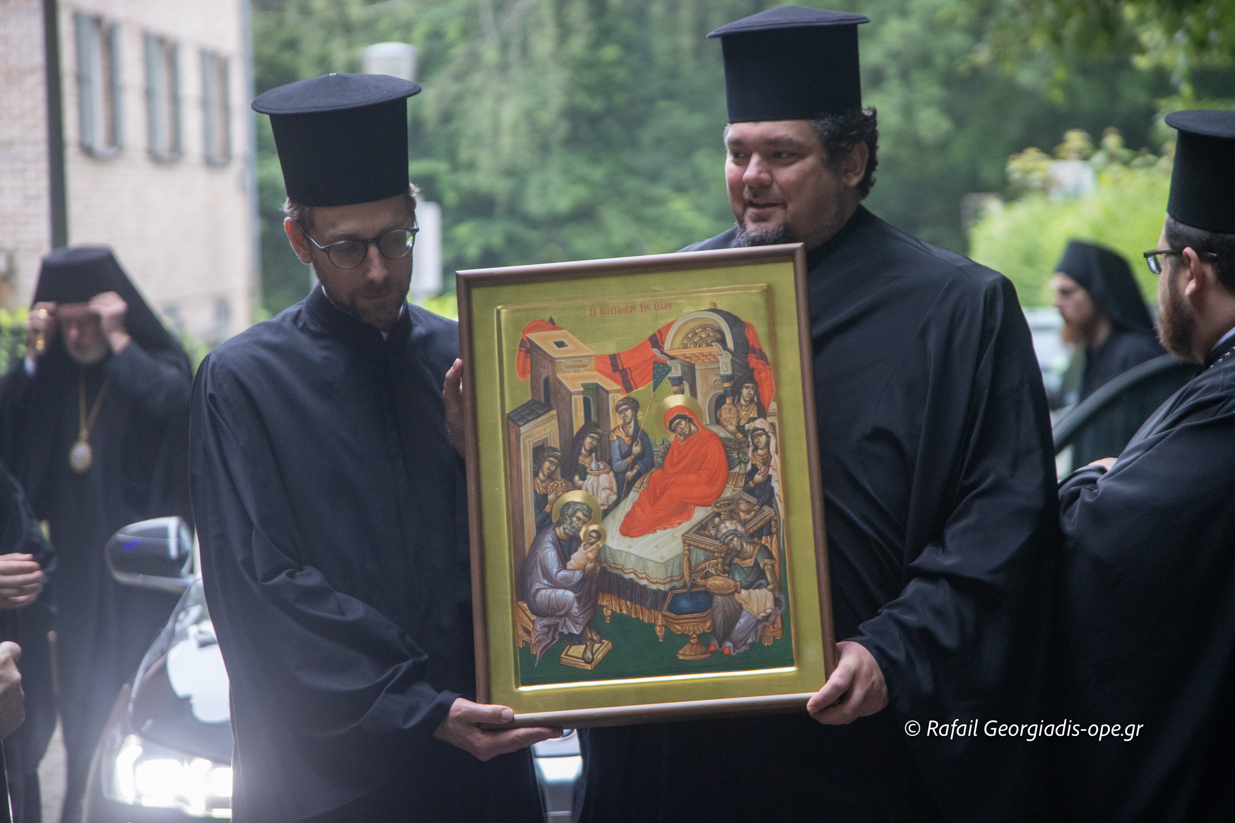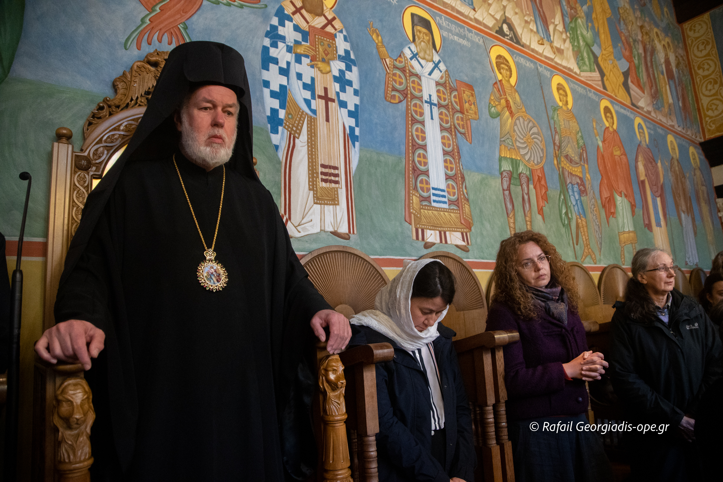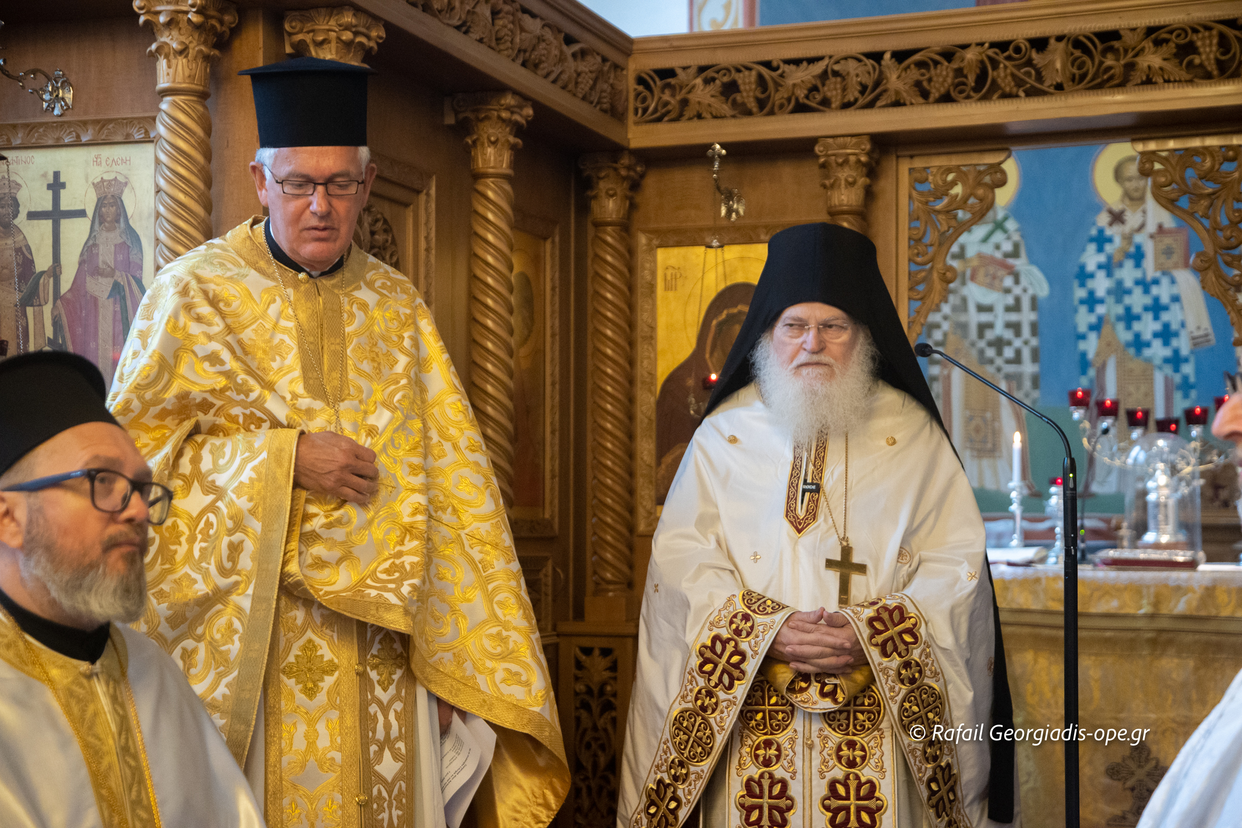 Μετά την υποδοχή ο Γέροντας Εφραίμ τέλεσε το μυστήριο της Θείας Ευχαριστίας και κήρυξε τον θείο λόγο.