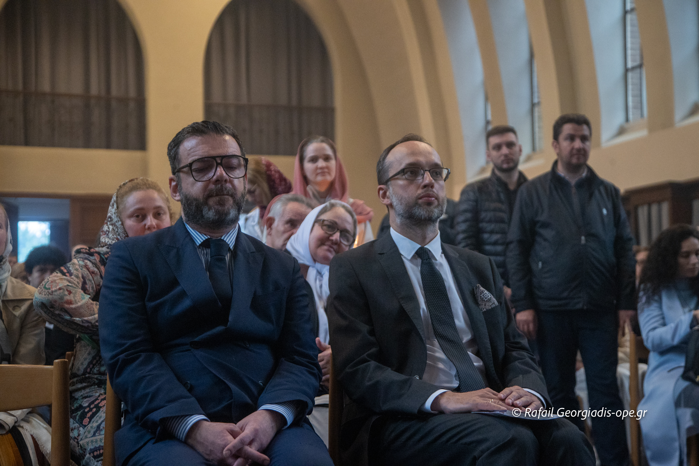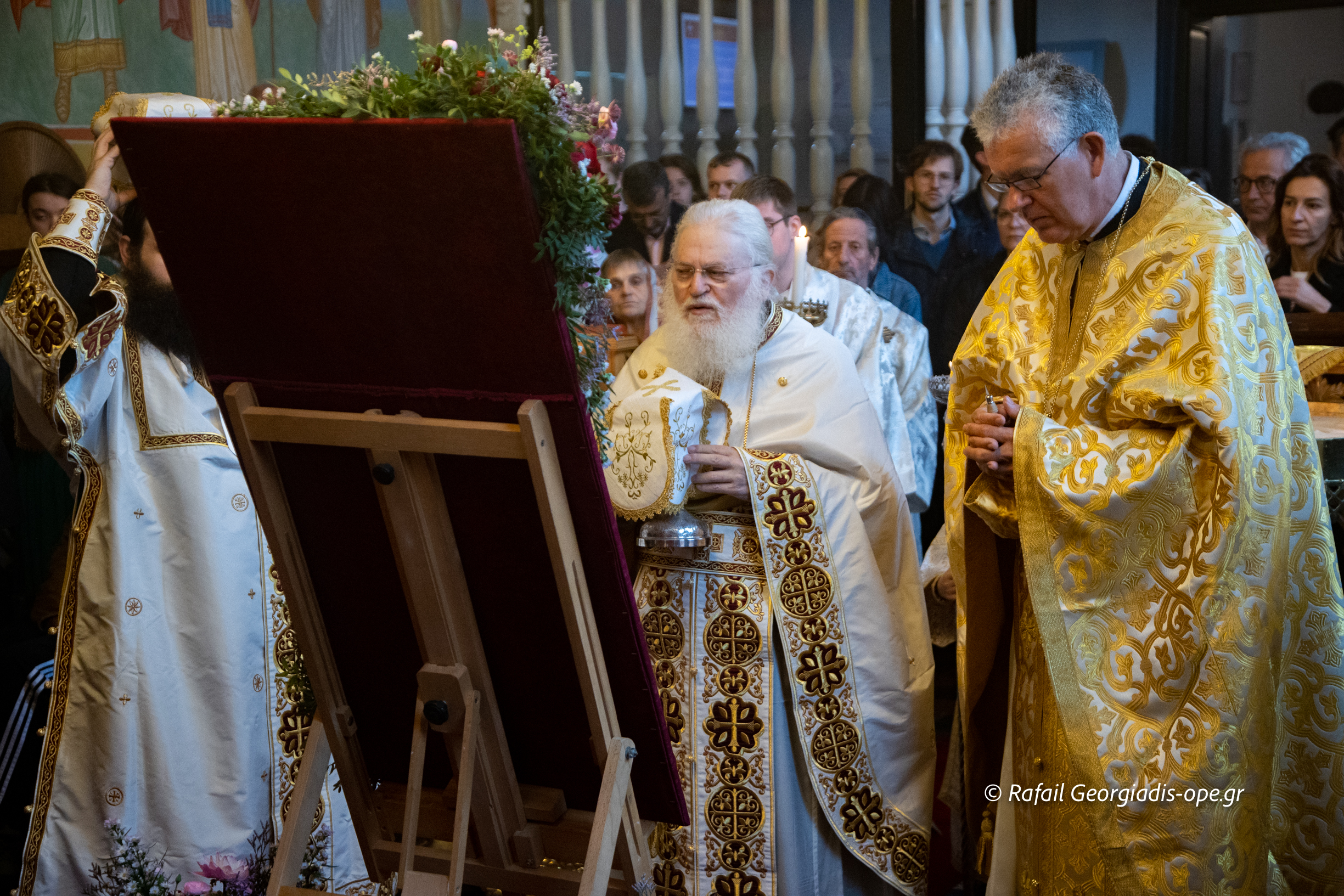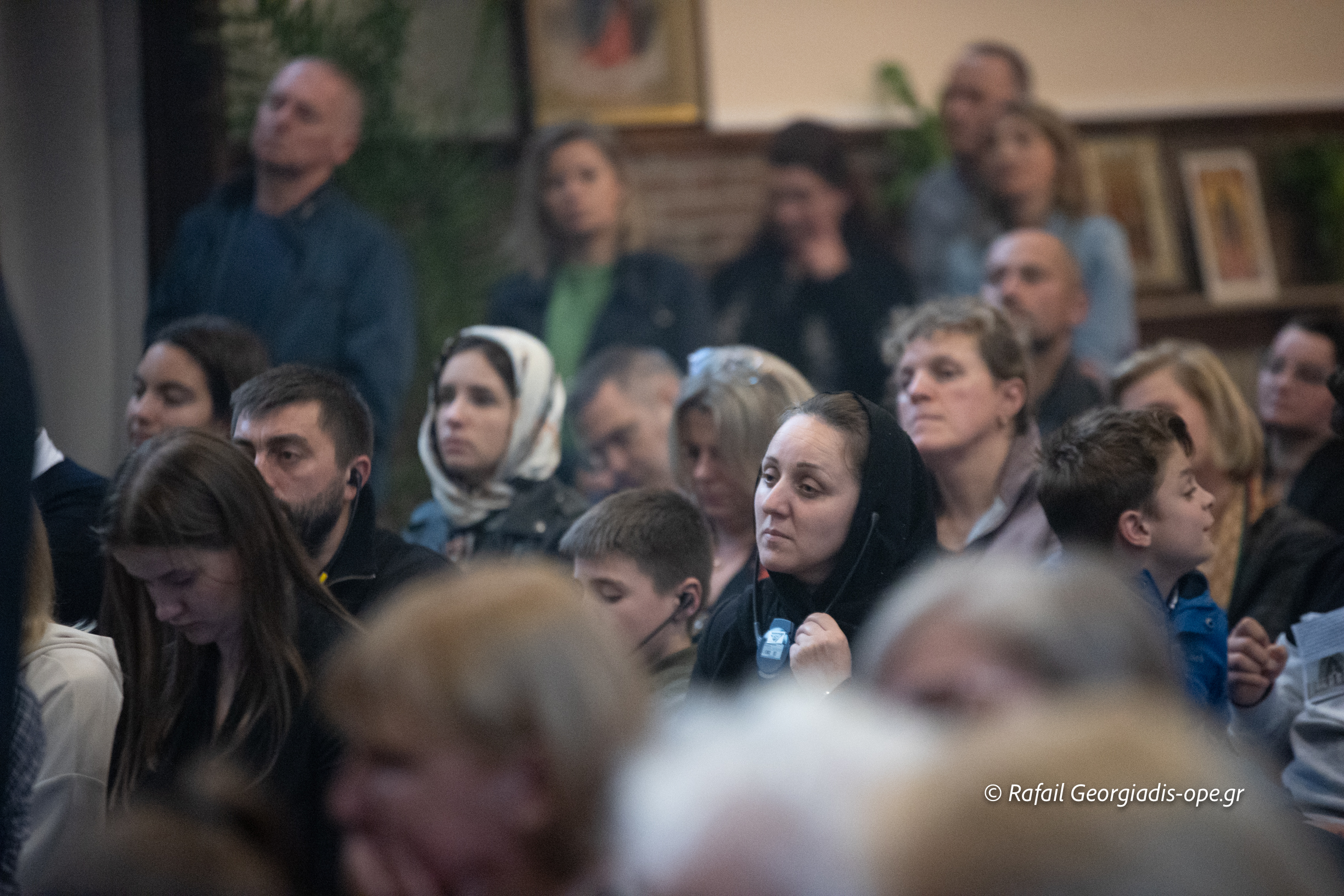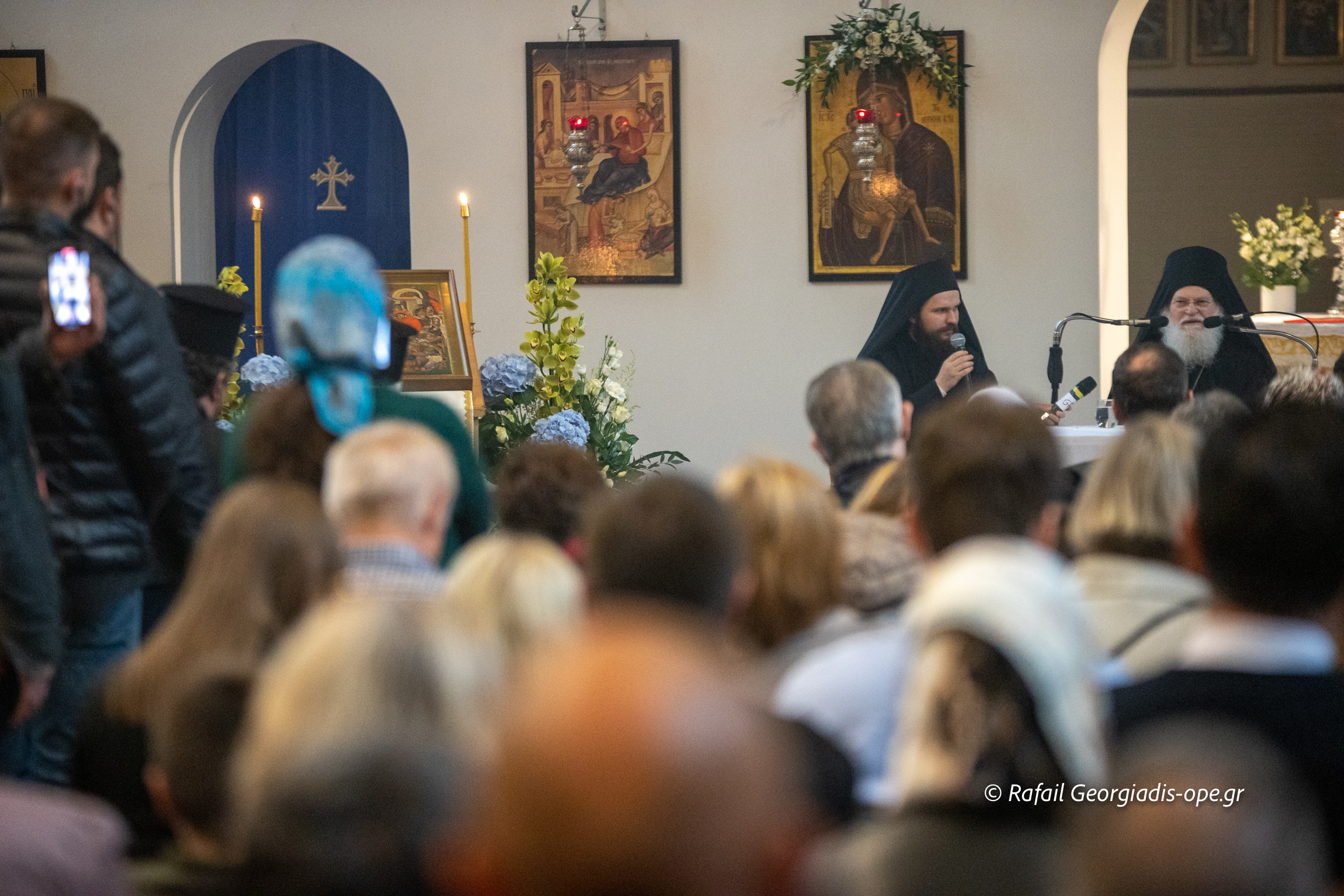 «Είμαστε πολύ συγκινημένοι γιατί σήμερα έχουμε την ευκαιρία να ζήσουμε μια ιστορική στιγμή στην ενορία μας. Είναι σπάνια, ένας Ηγούμενος του Αγίου Όρους με την συνοδεία του, που αφιέρωσαν τη ζωή του στο Θεό να επισκέπτονται αυτόν τον Ιερό Ναό. Θα θέλαμε λοιπόν να απευθύνουμε θερμές ευγνώμονες ευχαριστίες στον Γέροντα Εφραίμ και τη συνοδεία του.