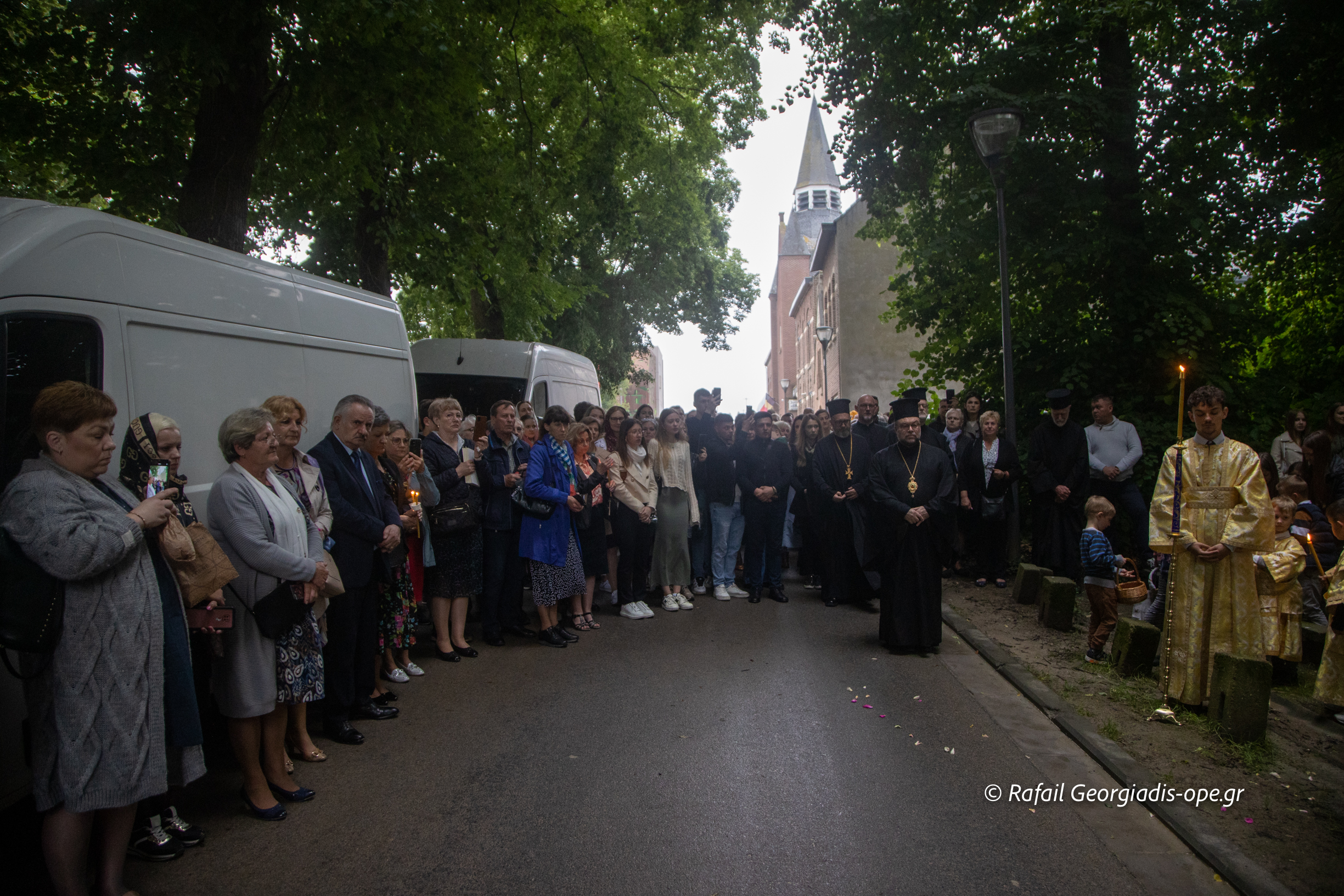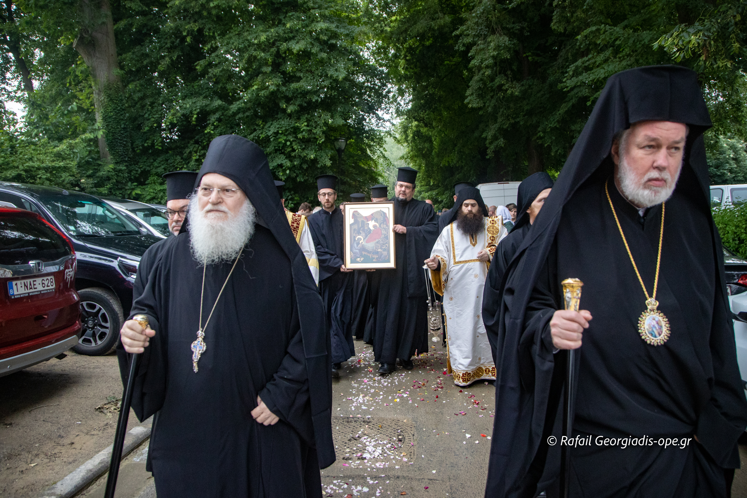 Τον Σταυρό εκόμισε ο Ηγουμενος της Ι.Μ.Μ.Β. Γέροντας Εφραίμ μαζί με πατέρες της μονής και τον υποδέχτηκε σύσσωμη η ενορία της περιοχής με πρώτο τον Μητροπολίτη Βελγίου κ. Αθηναγόρα.