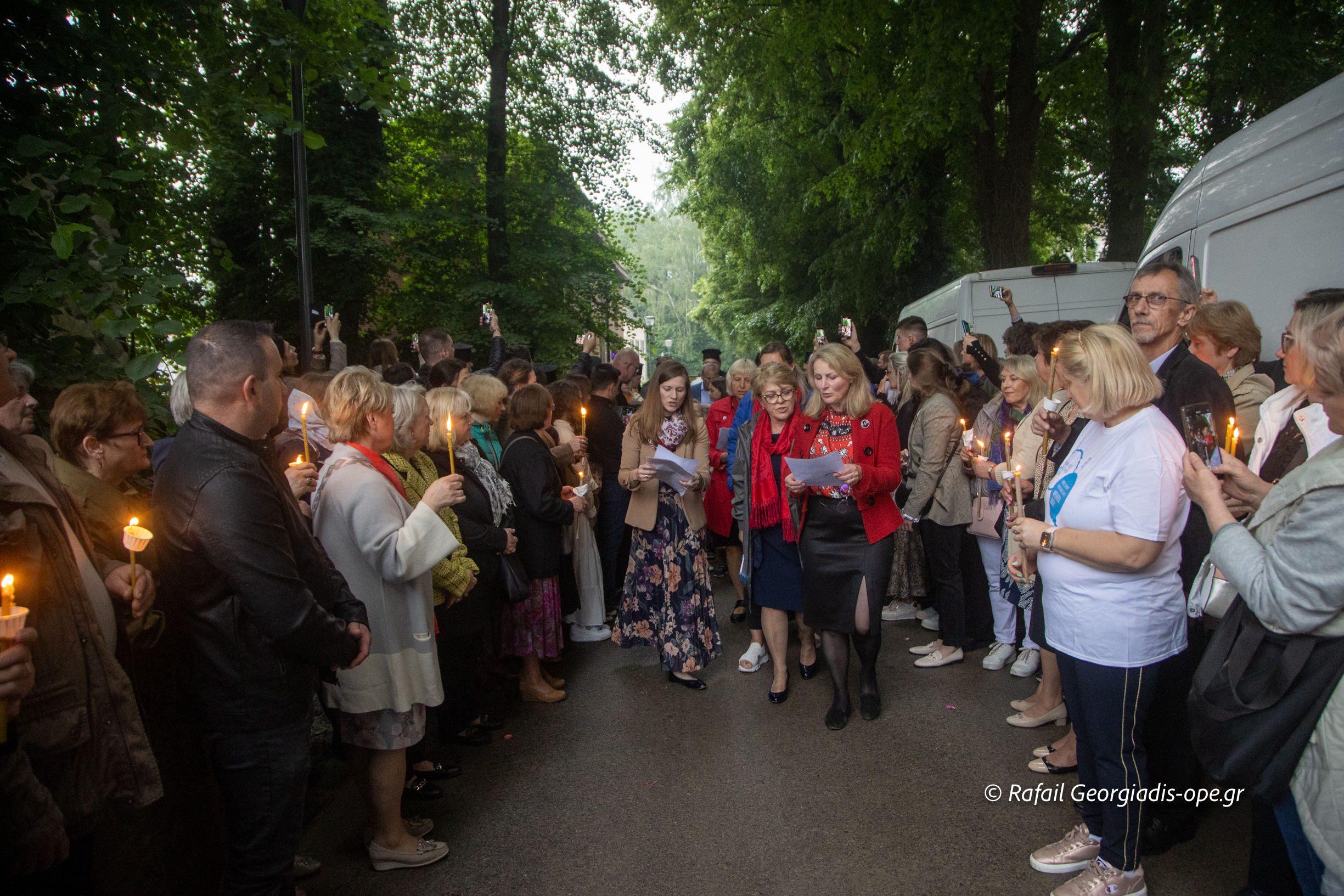 Πλήθος κόσμου, ιερείς, διάκονοι παρέστησαν στην υποδοχή της εικόνας όπου τελέσθηκε δέηση και αμέσως μετά με πομπή μετέβησαν στο ναό για την τέλεση του Εσπερινού.