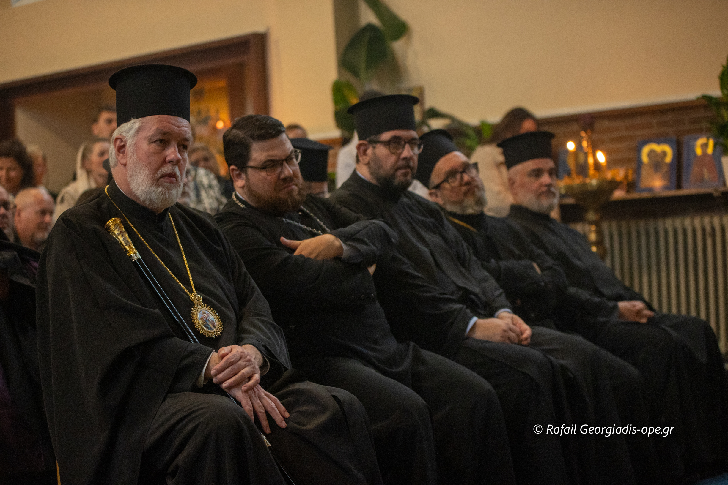Ο Μητροπολίτης Βελγίου κ. Αθηναγόρας καλωσόρισε τον Γέροντα Εφραίμ και την συνοδεία του αρχικά και στη συνέχεια αναφέρθηκε στην μεγάλη ευλογία που έφερε (τον Σταύρο του Μεγάλου Κωνσταντίνου) με τεμάχιο λειψάνου του Τίμιου Σταυρού ως ευλογία για την ενορία.