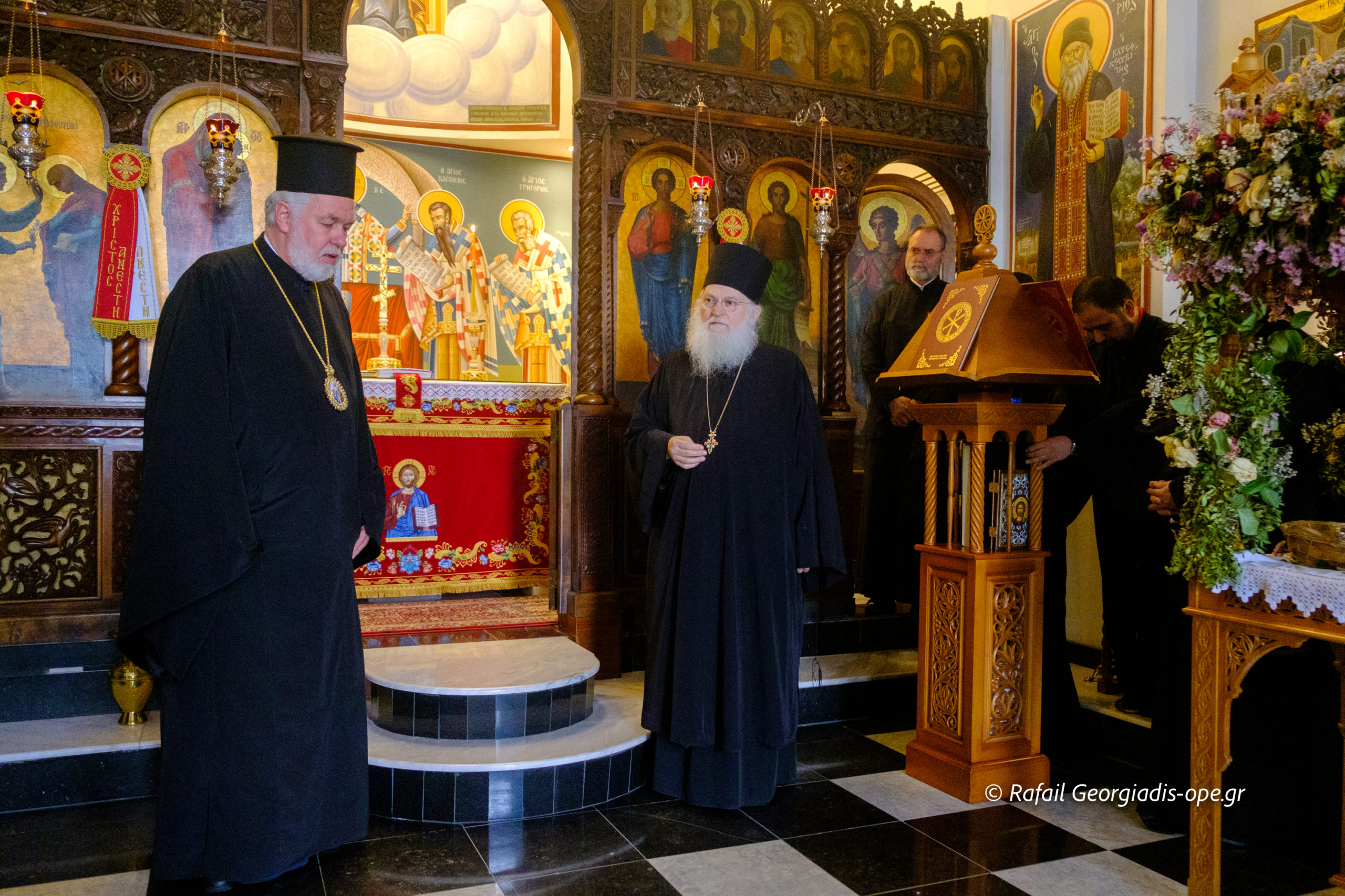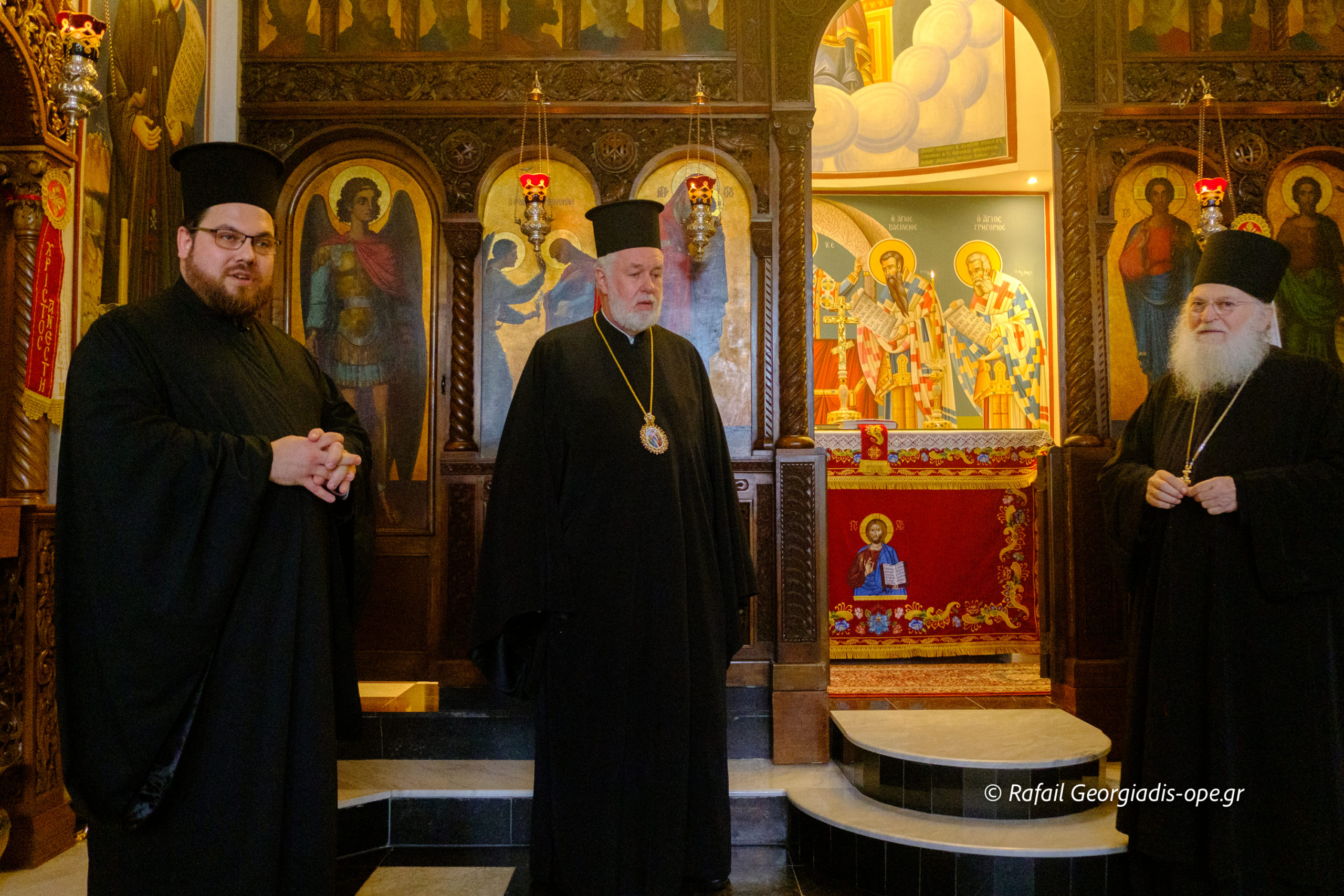 Ο Μητροπολίτης Βελγίου κ. Αθηναγόρας, καλωσόρισε τον Γέροντα Εφραίμ και τη συνοδεία του στην ενορία του Ευαγγελισμού της Θεοτόκου και στη συνέχεια μίλησε για την ιστορία του Ιερού Ναού.