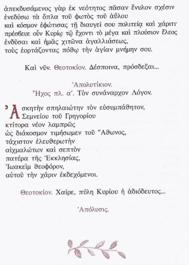Ευχαριστούμε θερμά το φίλτατό μας Μοναχό, για την παρότρυνσή του να συντάξουμε την παρούσα Ακολουθία, καθώς και για την πρόνοιά του να ιστορηθεί η εικόνα του, την οποία εκδίδουμε στο εξώφυλλο της παρούσης φυλλάδος.