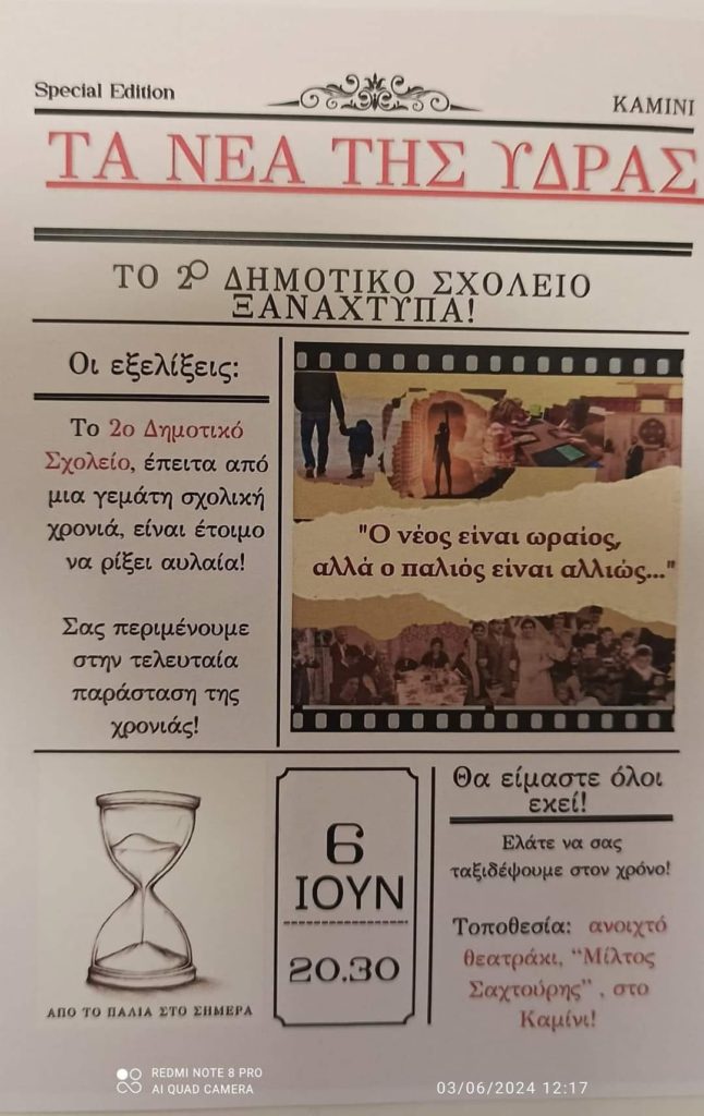 Ο Σεβασμιώτατος Μητροπολίτης Ύδρας, Σπετσών και Αιγίνης κ. Εφραίμ, συνοδευόμενος υπό του Αναπλ. Πρωτοσυγκέλλου Αρχιμ. π. Θεοδώρου Θεοδοσίου, παρέστη χθες στην σχολική εορτή του Β’ Δημοτικού Σχολείου Ύδρας για την λήξη των μαθημάτων και ευχήθηκε πατρικά.