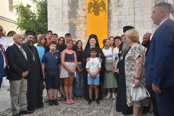 Το βράδυ της Τρίτης ο Οικουμενικός Πατριάρχης κ.κ. Βαρθολομαίος μετέβη στο ανοικτό θέατρο Λευκάδας όπου παρακολούθησε την αφιερωματική βραδιά “Πώς μας θωρείς ακίνητος;” με αφορμή τα 200 χρόνια από την γέννηση του ποιητή Αριστοτέλη Βαλαωρίτη.