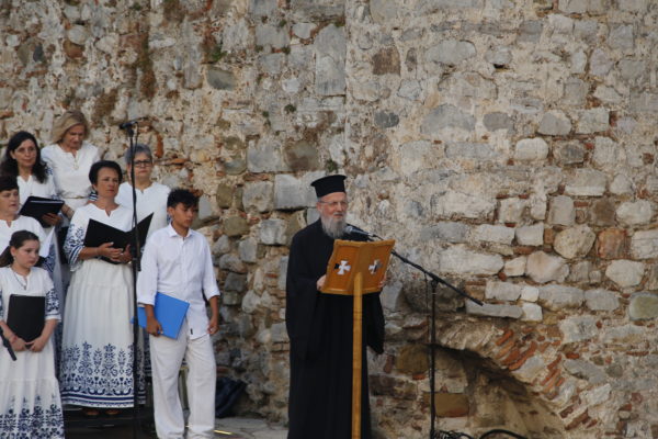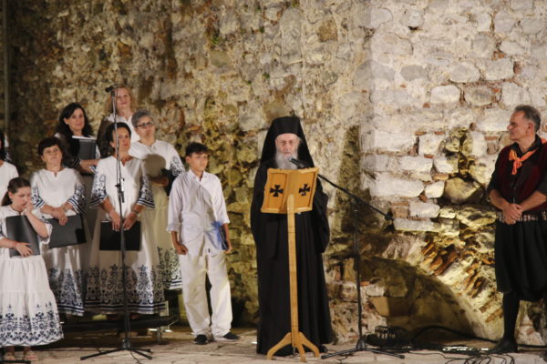 Στο κλείσιμο της εκδήλωσης ο Σεβασμιώτατος Μητροπολίτης Ναυπάκτου και Αγίου Βλασίου κ. Ιερόθεος αφού ευχαρίστησε όλους τους συντελεστές της εκδήλωσης, είπε ότι από την αρχή της τριαντάχρονης ποιμαντορίας του στην Μητρόπολη Ναυπάκτου, εκτός από την θεολογία που διακονεί, κηρύτοντας και συγγράφοντας, επεδίωξε να αναδειχθούν στοιχεία από την παράδοση του τόπου, όπως είναι το δημοτικό τραγούδι, στοιχεία που ενώνουν όλον τον λαό. Αυτό γίνεται με την Χορωδία Παραδοσιακής Μουσικής της Ιεράς Μητροπόλεως, που πραγματοποιεί πολλές εκδηλώσεις μέσα στον χρόνο. Αναφέρθηκε κατόπιν στα γεγονότα της Κύπρου του 1974, όπως τα έζησε ο ίδιος ως νέος Κληρικός, και είπε ότι δεν μπορεί κανείς να ξεχάσει τα αίματα που χύθηκαν, αλλά και το πόσες αποφάσεις του Συμβουλίου Ασφαλείας και των Ηνωμένων Εθνών ελήφθησαν και δεν τηρούνται. Είναι ένα συνεχιζόμενο έγκλημα. Κατόπιν με αφορμή τα τραγούδια για την αγάπη που ακούστηκαν αναφέρθηκε στο τι πραγματικά ζητάει ο άνθρωπος. Στο ερώτημα αυτό απάντησε από την εμπειρία των μεταφράσεων σε όλο τον κόσμο των βιβλίων του που παρουσιάζουν την θεολογία των Πατέρων της Εκκλησίας. Διαπίστωσε ότι οι άνθρωποι ζητούν αληθινή ελευθερία, ανιδιοτελή αγάπη και εσωτερική ησυχία. Αυτό φάνηκε και από τα τραγούδια που ακούστηκαν﮲ θέλουμε την ομορφιά της ελευθερίας, της αγάπης και της εσωτερικής ησυχίας. Τέλος ευχήθηκε καλό μήνα και δροσερό καλοκαίρι με δροσιά ψυχική και πνευματική.