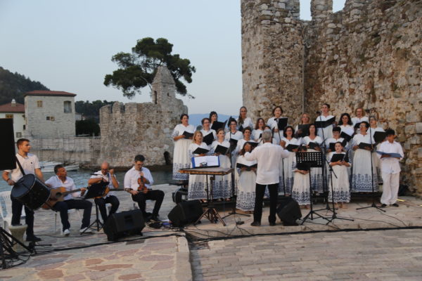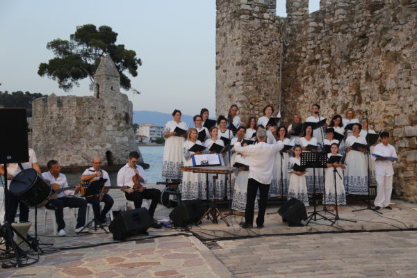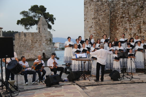 Στην συνέχεια η Χορωδία τραγούδησε δημοτικά τραγούδια του Αιγαίου και της Μικράς Ασίας. Τα αιγαιοπελαγίτικα τραγούδια προλόγισε η Ιατρός κ. Σοφία Σχοινά και τα μικρασιάτικα η φιλόλογος κ. Έφη Σταυρογιαννοπούλου. Τα τραγούδια της χορωδίας συνόδευσαν χορευτικά τμήματα του Ναυπακτιακού Χορευτικού Ομίλου «Ναύς» του κ. Γιάννη Βαφειάδη.