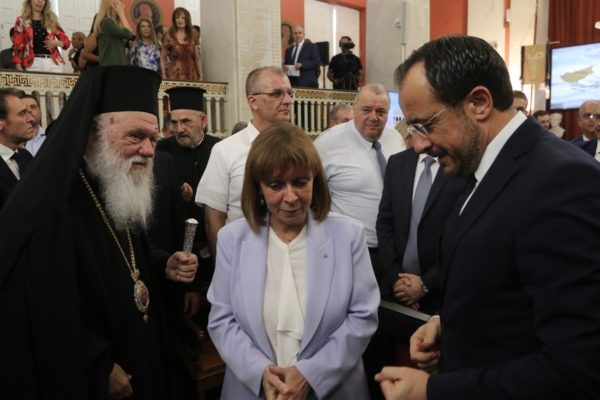Ο Αρχιεπίσκοπος στην επετειακή εκδήλωση: «50 χρόνια από την τουρκική εισβολή στην Κύπρο» παρουσία Σακελλαροπούλου-Χριστοδουλίδη