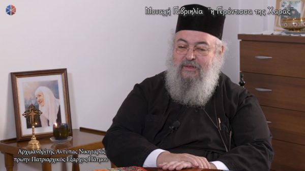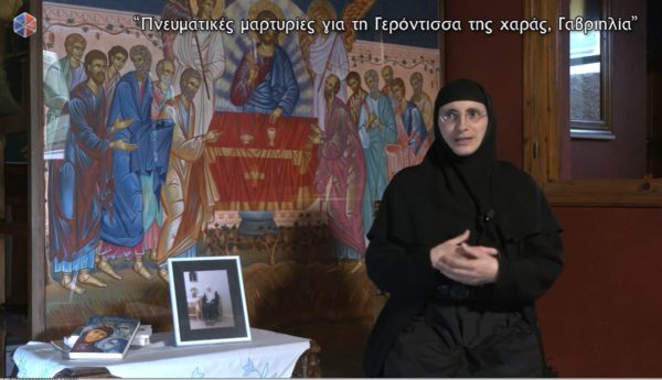 Για την ”Γερόντισσα της χαράς και της αγάπης” την Μοναχή Γαβριηλία Παπαγιάννη μίλησε στην κάμερα της Pemptousia TV και τον Δημήτρη Στρουμπάκο ο πρώην Πατριαρχικός Εξαρχος Πάτμου, Αρχιμανδρίτης Αντύπας Νικηταράς. Στο αφιέρωμα που ακολουθεί περιγράφει τις συναντήσεις που είχε με την Μοναχή Γαβριηλία και τις πνευματικές εμπειρίες που είχε μαζί της.