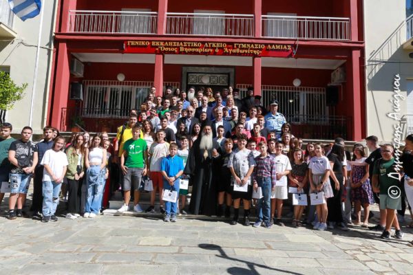 Στο Πρότυπο Εκκλησιαστικό Γυμνάσιο και Λύκειο Λαμίας «Ο Όσιος Βησσαρίων ο Αγαθωνίτης», το οποίο φέτος ήδη αριθμεί 107 μαθητές και μαθήτριες εκ της Εκκλησίας της Ελλάδος, ο κ. Συμεών τόνισε ότι «το σχολείο είναι οικογένεια και σήμερα είμαστε εδώ μία μεγάλη οικογένεια. Πρώτα απ’ όλα τα παιδιά, οι καθηγητές, οι καθηγήτριες, τα στελέχη τα υψηλόβαθμα της εκπαίδευσης, οι άρχοντές μας, όλοι είμαστε εδώ πατέρες και αδελφοί και φίλοι, γιατί η υπόθεση της παιδείας είναι υπόθεση όλων μας και ένα σχολείο για να πάει μπροστά, θα πρέπει όλοι να συμβάλουμε και όλοι να βοηθήσουμε γονείς παιδιά καθηγητές κοινωνία.