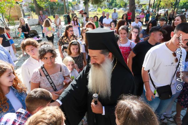 Σε όλα τα σχολεία και στους Διευθυντές ο Σεβασμιώτατος προσέφερε μία εικόνα του Οσίου Βησσαρίωνος του Αγαθωνίτου και άλλες ευλογίες για όλα τα παιδιά.