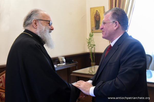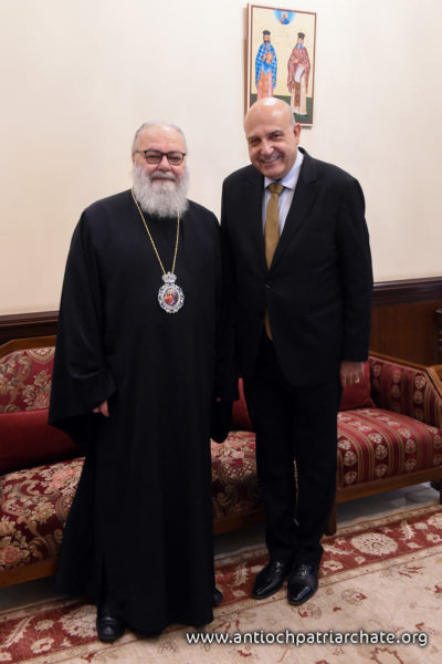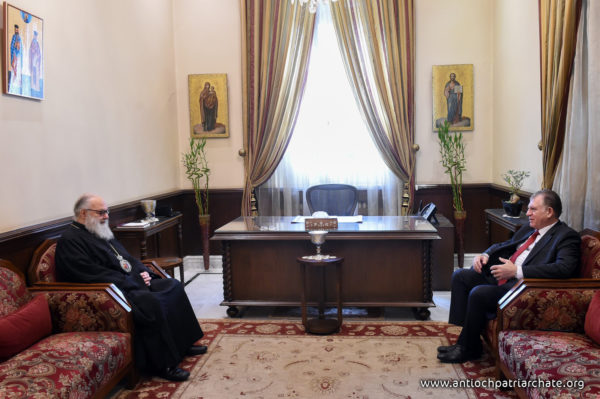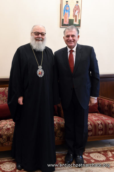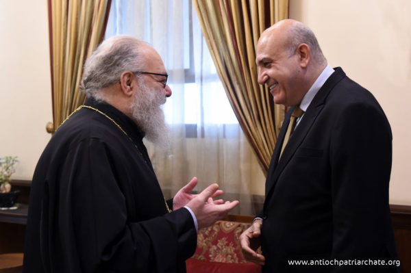 Ο Μακαριώτατος Πατριάρχης Αντιοχείας κ.κ. Ιωάννης υποδέχθηκε χθες τον Πρέσβη της Συρίας στην Αργεντινή Δρ. Σάμι Σαλαμέχ και τον Πρέσβη της Συρίας στην Κούβα Dr. Ghassan Obaid, στην Πατριαρχική έδρα στη Δαμασκό.