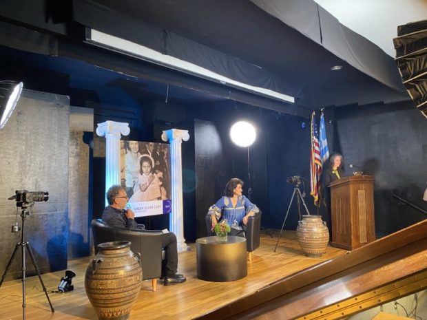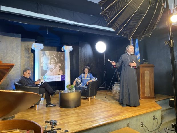 Η Αντζι Ξυδιά (Angie Xidias), ιδρύτρια του Ελληνικού Δικτύου Φροντίδας Ηλικιωμένων, ευχαρίστησε όλους όσους παρευρέθηκαν και τον πιανίστα Βασίλη Βασιλείου για την ερμηνεία του, καθώς οι καλεσμένοι έπαιρναν τις θέσεις τους για την εκδήλωση. Σημείωσε ότι η εκδήλωση ήταν η πρώτη συνέντευξη του HAP που πραγματοποιήθηκε ζωντανά μπροστά σε κοινό και στη συνέχεια μίλησε για το Ελληνικό Δίκτυο Φροντίδας Ηλικιωμένων, μια εταιρεία με κοινωνικό αντίκτυπο που είναι αφιερωμένη στην παροχή υποστήριξης και πόρων στους ηλικιωμένους και τις οικογένειές τους στην ελληνοαμερικανική κοινότητα. Η κ. Ξυδιά μοιράστηκε την προσωπική, οικογενειακή εμπειρία της από τη φροντίδα της μητέρας της μετά από εγκεφαλικό επεισόδιο, η οποία την οδήγησε στην ίδρυση του οργανισμού. Σημείωσε επίσης ότι η μητέρα της είχε δοθεί για υιοθεσία και αυτή η σύνδεση οδήγησε την ίδια στο The Eftychia Project και τις προσπάθειές του.