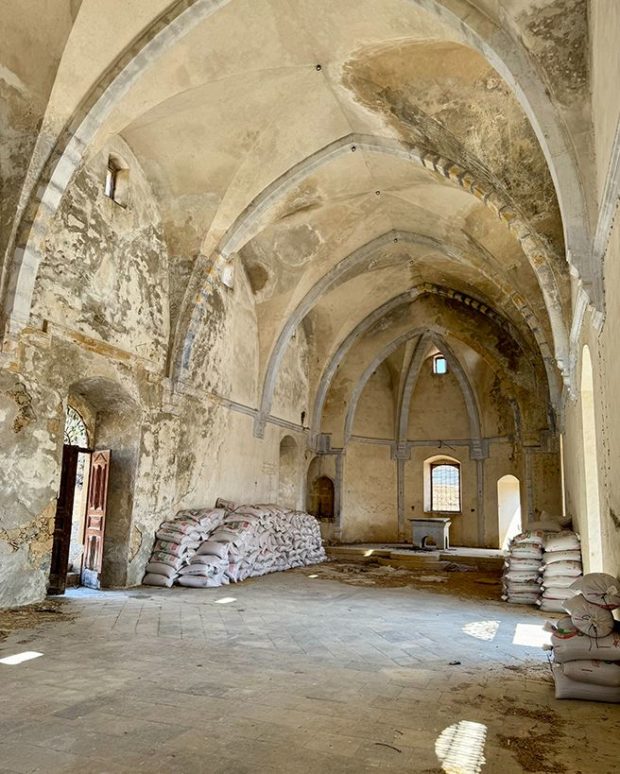 Οι πόρτες της εκκλησίας του Αγίου Χαραλάμπους ανοιχτές – ένα παιδί έπαιζε σε κάποιο υποτυπώδες πάρκο στο πλάι (εκεί όπου, όπως μου «περιέγραφε» το google maps κάποτε πρέπει να υπήρχε δημοτικό σχολείο, τουρκικό πλέον, αλλά εγκαταλελειμμένο ξανά, λόγω αστυφιλίας μάλλον). Μια αποθήκη σιτηρών πια η μεγάλη εκκλησία, περιττώματα στο πάτωμα, συνθήματα στους τοίχους με τουρκικές λέξεις, μα- ευτυχώς- οι σχηματισμένοι σταυροί στους τοίχους στη θέση τους όπως και η επιγραφή των θυρανοιξίων: «Επί π. Μητροπολίτου Κυρηνείας κ. Μακαρίου, δαπάναις Χατζηνικολάου και Χατζηπαρασκευής, την 10ην Φεβρουαρίου 1921».