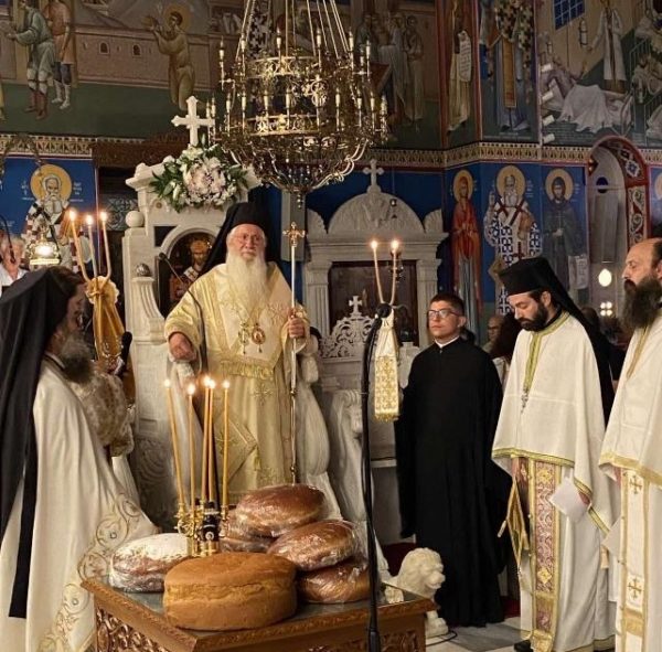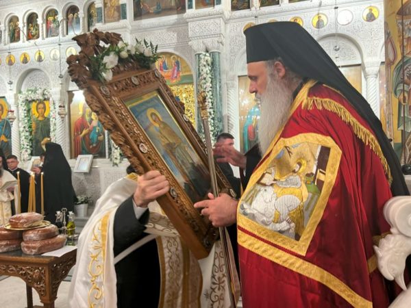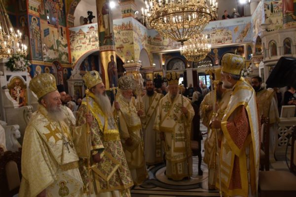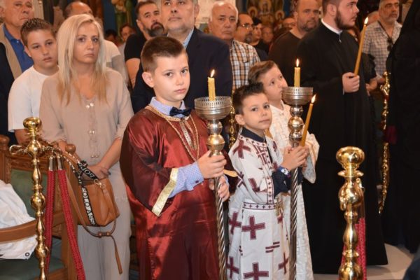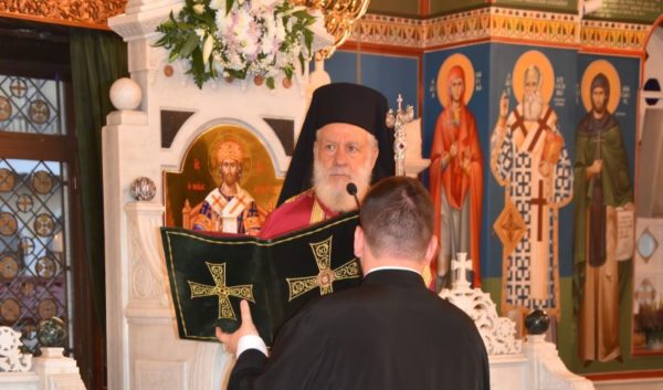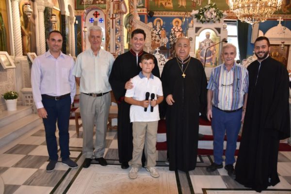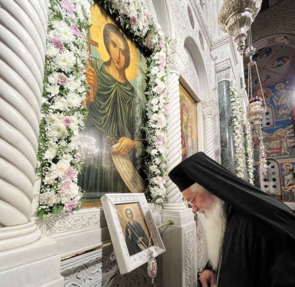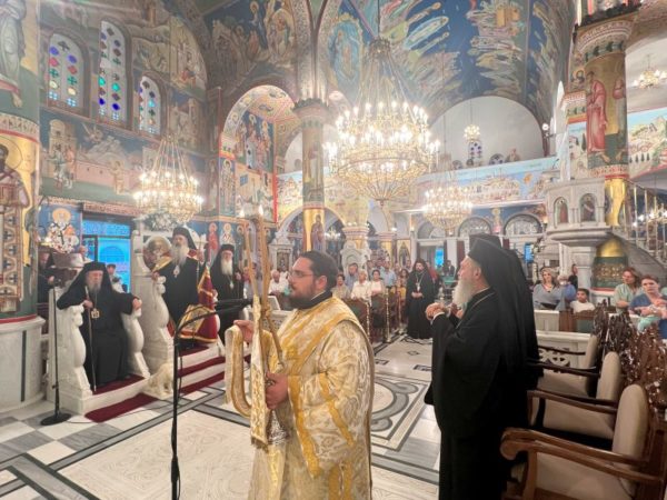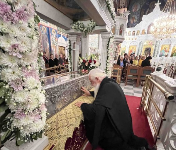 Λίγο πριν την απόλυση της Θείας Λειτουργίας, ο Σεβασμιώτατος Μητροπολίτης Χαλκίδος κ. Χρυσόστομος, αφού ευχαρίστησε τους προσελθόντες Αρχιερείς και συνεχάρη όσους εργάσθηκαν για την άρτια διοργάνωση των λατρευτικών εκδηλώσεων, που αναμεταδόθηκαν απ’ ευθείας από την ΕΡΤ, τον Ραδιοφωνικό Σταθμό της Εκκλησίας της Ελλάδος και τον Ραδιοφωνικό Σταθμό της Ιεράς Μητροπόλεως Χαλκίδος, τίμησε με το χρυσό Σταυρό του Ιερού Προσκυνήματος τον Πρωτοψάλτη κ. Θεοδόσιο Στεργιόπουλο, για την 35ετή εύφημη διακονία του στο ιερό αναλόγιο του Προσκυνηματικού Ιερού Ναού.