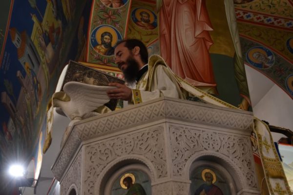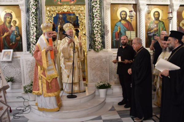Στον Όρθρο της Κυριακής χοροστάτησε ο Σεβασμιώτατος Μητροπολίτης Σύρου κ. Δωρόθεος, ενώ στο Αρχιερατικό Συλλείτουργο προεξήρχε και κήρυξε τον θείο λόγο ο Σεβασμιώτατος Μητροπολίτης Καρυστίας και Σκύρου κ. Σεραφείμ, ο οποίος αναλύοντας ερμηνευτικά την Ακολουθία των Εγκαινίων ενός Ναού, ανέπτυξε και την σημασία της ανθρώπινης ανακαίνισης, διά της συμμετοχής του ανθρώπου στα ιερά μυστήρια της Εκκλησίας.