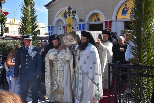 Στην πανήγυρη της αναμνήσεως των εγκαινίων συμμετείχαν οι Σεβασμιώτατοι Μητροπολίτες Καρυστίας και Σκύρου κ. Σεραφείμ, Σύρου κ. Δωρόθεος, Θηβών, Λεβαδείας και Αυλίδος κ. Γεώργιος, Μεγάρων και Σαλαμίνος κ. Κωνσταντίνος, Σταγών και Μετεώρων κ. Θεόκλητος, ο Θεοφιλέστατος Επίσκοπος Σκοπέλου κ. Νικόδημος και ο οικείος Ποιμενάρχης, Σεβασμιώτατος Μητροπολίτης Χαλκίδος κ. Χρυσόστομος.