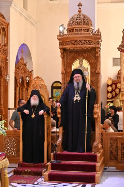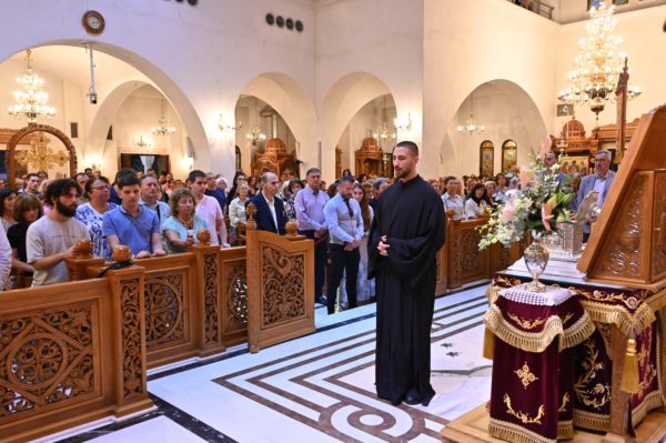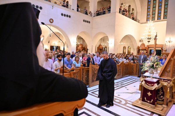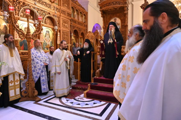 Εκ μέρους του Ιερού Ναού τον Σεβασμιώτατο κ. Ιερώνυμο και τον Καθηγούμενο Γέροντα Εφραίμ αντιφώνησε ο Προϊστάμενος, Πρωτοπρεσβύτερος Ματθαίος Χάλαρης.