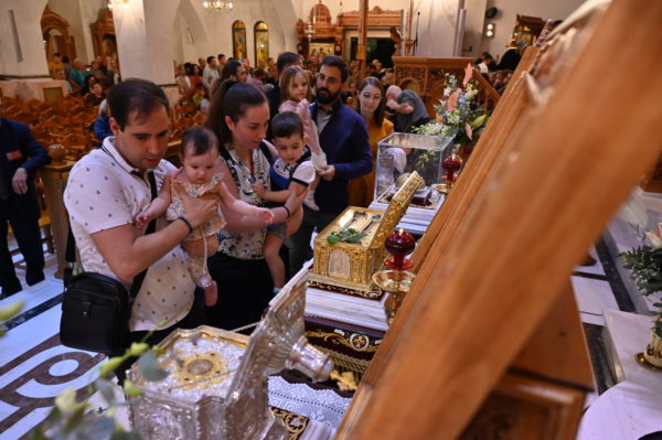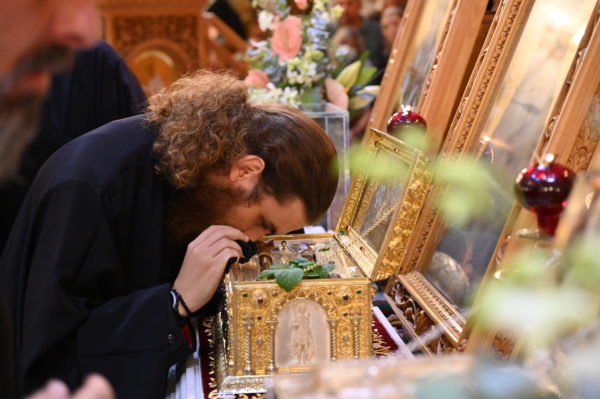 Να σημειωθεί το γεγονός ότι η αυξημένη ροή του ασπασμού των ιερών λειψάνων από τους πολυάριθμους πιστούς συνεχίστηκε και κατά τη διάρκεια της τελέσεως της Ιεράς Αγρυπνίας.