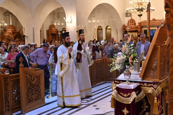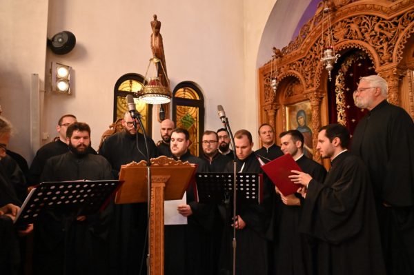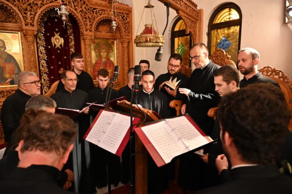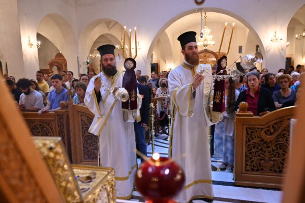 Μετά την πανηγυρική υποδοχή τελέστηκε η ακολουθία του Εσπερινού χοροστατούντος του Σεβ. Μητροπολίτη Λαρίσης και Τυρνάβου κ. Ιερωνύμου. Έψαλλε ο χορός ψαλτών “Τρόπος”, υπό τη διεύθυνση του Πρωτοψάλτη Κωνσταντίνου Αγγελίδη ενώ στο αριστερό αναλόγιο έψαλλε χορός υπό τη διεύθυνση του Πρωτοψάλτη Εμμανουήλ Αβραάμ. Συμπροσευχόμενοι παρέστησαν εκ του ιερού βήματος οι Σεβ. Μητροπολίτες Λευκάδος και Ιθάκης κ. Θεόφιλος και Ζακύνθου κ. Διονύσιος.