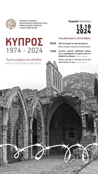 Ελληνορθόδοξη Ενορία του Μιλάνου τίμησε την Κυριακή, 13 Οκτωβρίου 2024, τη μνήμη των πεσόντων της κυπριακής τραγωδίας του 1974, διοργανώνοντας την πρώτη επίσημη εκδήλωση μνήμης για την πόλη του Μιλάνου και ολόκληρη την Ιταλία.