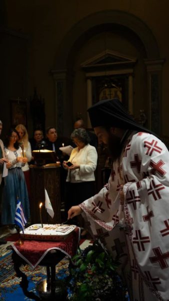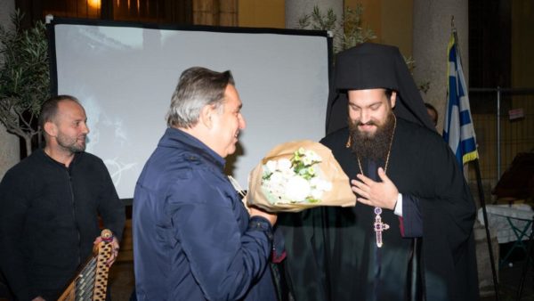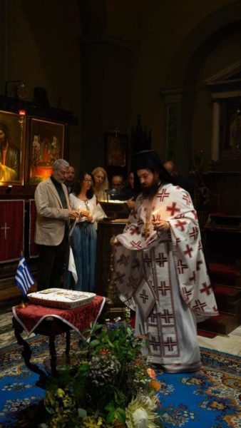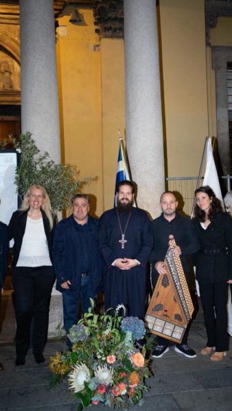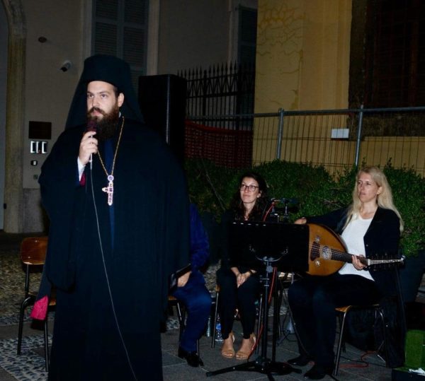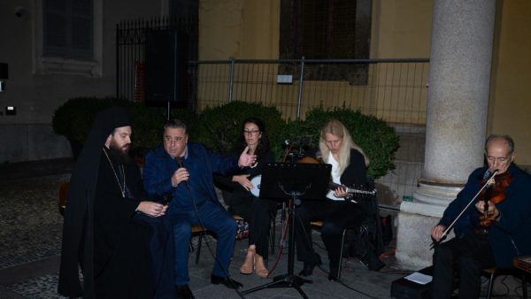 Το απόγευμα, στον αύλειο χώρο του Ιερού Ναού πραγματοποιήθηκε εκδήλωση με θέμα “ΥΜΝΟΣ ΜΝΗΜΗΣ ΚΑΙ ΕΛΠΙΔΑΣ”, υπό την καθοδήγηση του Πανοσιολογιοτάτου Αρχιμανδρίτη Ιωάννη Μπατσή και με τη βοήθεια των συνεργατών του. Ο ιερέας καλωσόρισε τους παρευρισκόμενους και ξεκίνησε την εκδήλωση, απευθύνοντας χαιρετισμό. Ακολούθησαν χαιρετισμοί από τον Εξοχότατο Πρέσβη της Κυπριακής Δημοκρατίας, κ. Γιώργο Χριστοφίδη, τον Εντιμότατο Γενικό Πρόξενο της Ελλάδος στο Μιλάνο και Άρχων της Μεγάλης του Χριστού Εκκλησίας, κ. Νικόλαο Σάκκαρη, καθώς και την Πρόεδρο της Ελληνικής Κοινότητας Μιλάνου, κ. Σοφία Ζαφειροπούλου.
