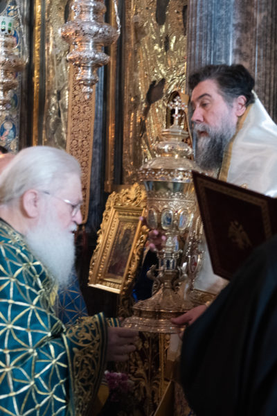 Στην πανήγυρη προεξήρχε ο Σεβασμιώτατος Μητροπολίτης Σερρών κ. Θεολόγος. Τον Σεβασμιώτατο πλαισίωσαν στην Θεία Λειτουργία ο Καθηγούμενος της Μονής Γέρων Αλέξιος, ο Καθηγούμενος της Ι.Μ.Μ. Βατοπαιδίου Γέρων Εφραίμ και ο Καθηγούμενος της Ι.Μ. Παντοκράτος Γαβριήλ και άλλοι Αγιορείτες πατέρες.