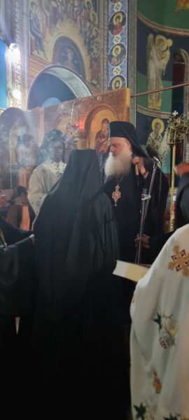 «Ενός τέτοιου αρχιερέως το Όνομα σου δίνει σήμερα δι’ εμού η Εκκλησία ώστε με την ευχή του να μιμηθείς το βίο και τις αρετές του» κατέληξε ο Σεβασμιώτατος, ο οποίος παρότρυνε τον νέο μοναχό να μελετά την ζωή των Οσίων Πατέρων και να αγωνίζεται να τους μοιάσει. Κατακλείοντας δε τον λόγο μετέφερε, τόσο στον νέο μοναχό όσο και στους υπόλοιπους αδελφούς, τις ευχές του Μακαριωτάτου Πάπα και Πατριάρχου Αλεξανδρείας και πάσης Αφρικής κ.κ. Θεοδώρου Β΄.