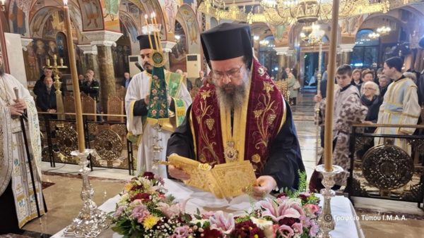 Αρχικά, στα προπύλαια του Μητροπολιτικού Ναού, ο Σεβασμιώτατος Μητροπολίτης Αιτωλίας και Ακαρνανίας κ. Δαμασκηνός, επικεφαλής του ιερού κλήρου και του φιλαγίου λαού, υποδέχθηκε απότμημα του Ιερού Λειψάνου του Οσίου και Θεοφόρου Πατρός ημών Αθανασίου, το οποίο εκόμισε ο Σεβασμιώτατος Μητροπολίτης Αργολίδος προς ευλογία και επιστηριγμό των πιστών. Στη συνέχεια τελέσθηκε η Ιερά Παράκληση του Αγίου Αθανασίου, χοροστατούντος του Σεβασμιωτάτου Ποιμενάρχου κ. Δαμασκηνού.