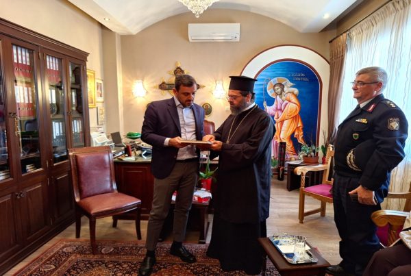 Ο Υφυπουργός Προστασίας του Πολίτη κ. Ανδρέας Νικολακόπουλος, ευρισκόμενος στην Κομοτηνή, επισκέφθηκε σήμερα τον Σεβασμιώτατο Μητροπολίτη Μαρωνείας και Κομοτηνής κ. Παντελεήμονα στα Γραφεία της Ιεράς Μητροπόλεως, συνοδευόμενος από τον Γενικό Αστυνομικό Διευθυντή Περιφερείας Ανατολικής Μακεδονίας και Θράκης, Στρατηγό κ. Ιωάννη Καραμανλή.