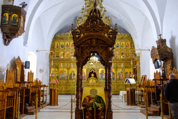 Ο πάτερ Ζαχαρίας μας μιλά έξω από τον Απόστολο Ανδρέα που διακονεί τόσα χρόνια με τον πόνο της κατοχής χαραγμένο στο πρόσωπό του: