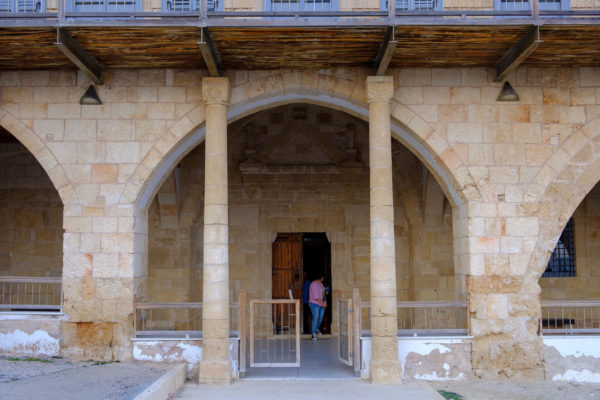 Βλέπετε εδώ το μοναστήρι του Απόστολου Ανδρέα πως ερήμωσε. Τα κτήρια, τα κελιά, τα γραφεία όλα έρημα. Έγιναν κάποιες αναστηλώσεις αλλά δεν αφήνουν να επανδρώσουμε το προσκύνημα αυτό οι Τούρκοι.