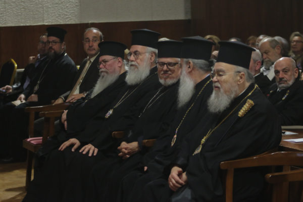 Στην εκδήλωση παρέστησαν ο Μητροπολίτης Λαοδικείας κ. Θεοδώρητος, Διευθυντής του Γραφείου Εκπροσωπήσεως του Οικουμενικού Πατριαρχείου στην Αθήνα, ο Μητροπολίτης Γουινέας κ. Γεώργιος, Εκπρόσωπος του Πατριάρχη Αλεξανδρείας στην Αθήνα, ο Μητροπλίτης Δωδώνης κ. Χρυσόστομος, ο Μητροπολίτης Ζακύνθου κ. Διονύσιος, ο Μητροπολίτης Ιλίου, Αχαρνών και Πετρουπόλεως κ. Αθηναγόρας, ο Μητροπολίτης Φιλίππων, Νεαπόλεως και Θάσου κ. Στέφανος, ο Πρέσβης της Κυπριακής Δημοκρατίας στην Αθήνα, Σταύρος Αυγουστίδης, κ.α.