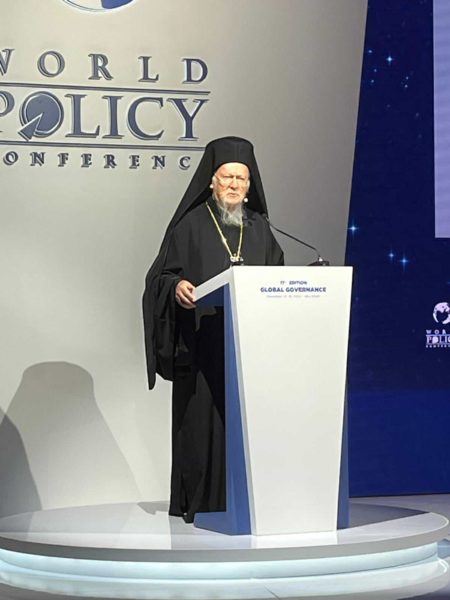 Ο Παναγιώτατος Οικουμενικός Πατριάρχης κ.κ. Βαρθολομαίος ήταν ο κεντρικός ομιλητής στο Διεθνές Συνέδριο “World Policy Conference”, που έλαβε χώρα στις 13 Δεκεμβρίου στο Άμπου Ντάμπι.