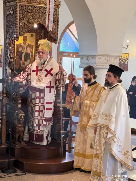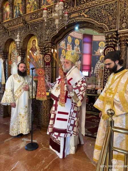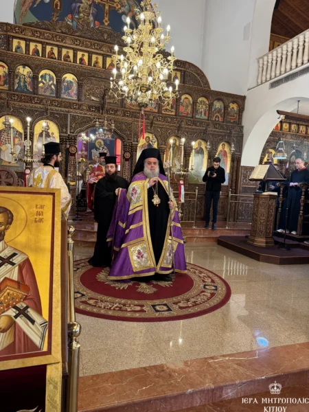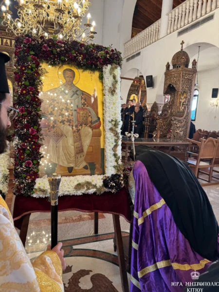 Ο Πανιερώτατος Μητροπολίτης Κιτίου κ. Νεκτάριος λειτούργησε στον πανηγυρίζοντα Ιερό Ναό Αγίου Ελευθερίου στο συνοικισμό Τσιακκιλερού την Κυριακή ΙΑ’ Λουκά (Των Προπατόρων), 15 Δεκεμβρίου 2024.