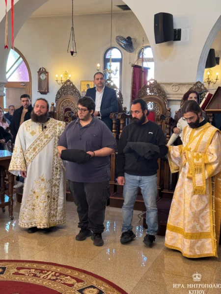 Στο τέλος της Θείας Λειτουργίας χειροθέτησε εις αναγνώστες τους κ. Ραφαήλ Κοντογιάννη και κ. Ανδρέα Αδάμου. Τιμήθηκαν επίσης οι κύριες της ερανικής επιτροπής για την προσφορά τους.