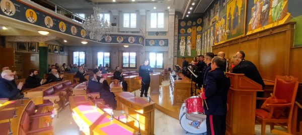 Η μπάντα της Πυροσβεστικής και η Ριζάρειος Σχολή έψαλαν τα κάλαντα στην Ιερά Σύνοδο